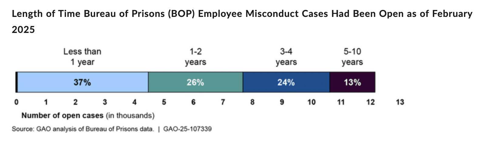 But, bottom line: Very few remedies filed actually achieve relief. In fact, the GAO found that as of February 2025, the BOP had 12,153 employee misconduct cases awaiting investigation or discipline. And of those, 37% have been unresolved for three or more years.